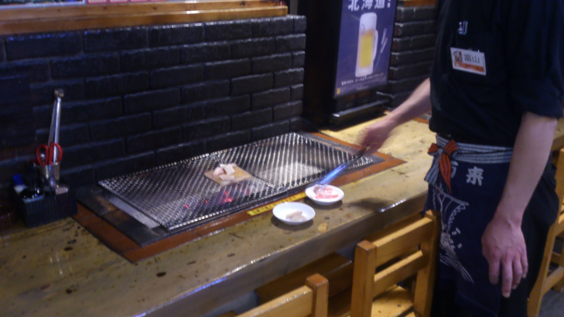 写真では、試験的にトントロを焼いていますが、メニューは牛タンですよ!