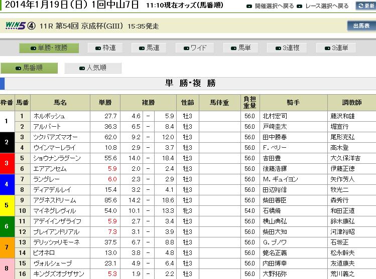まずは出馬表を拝借
