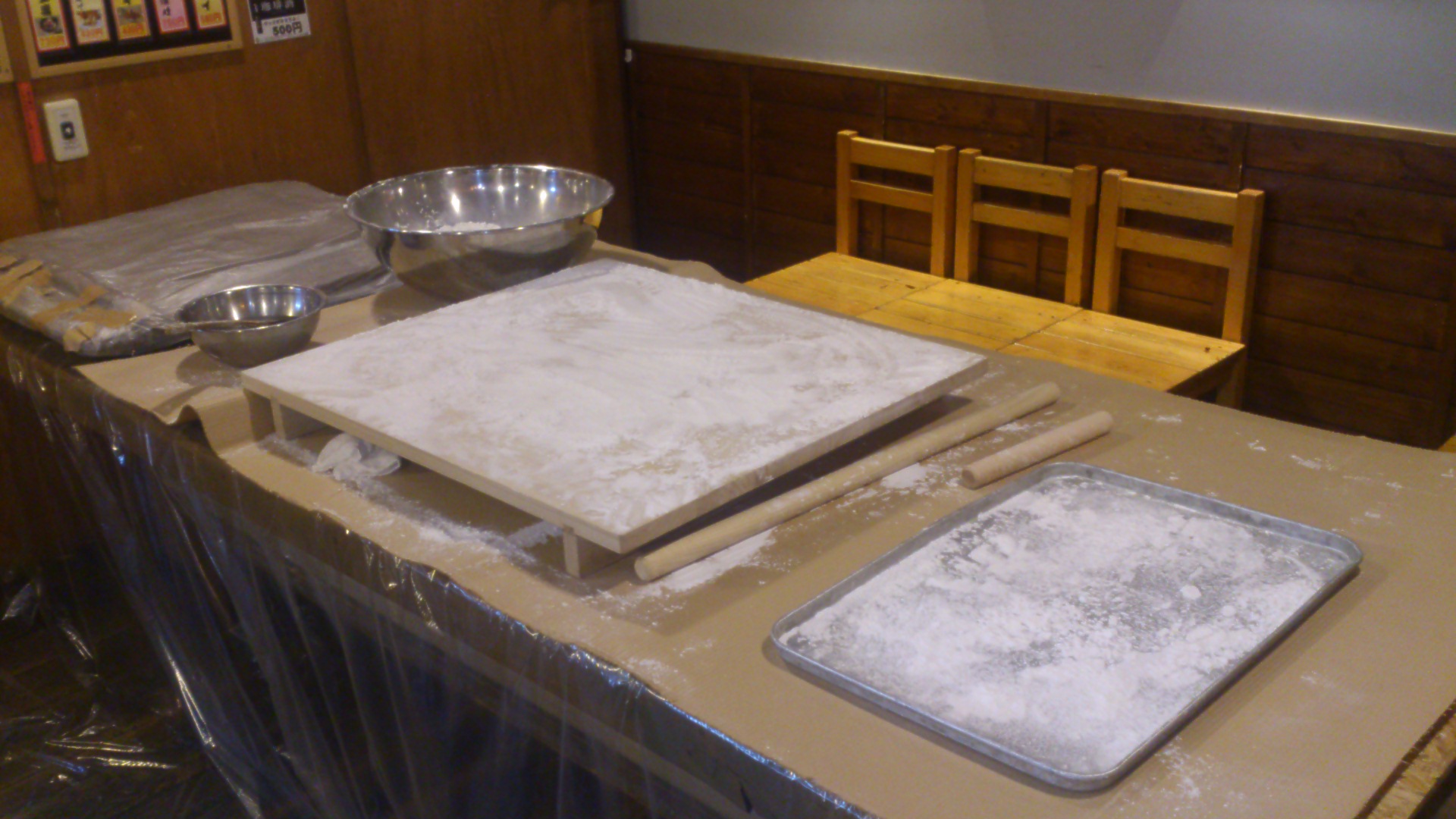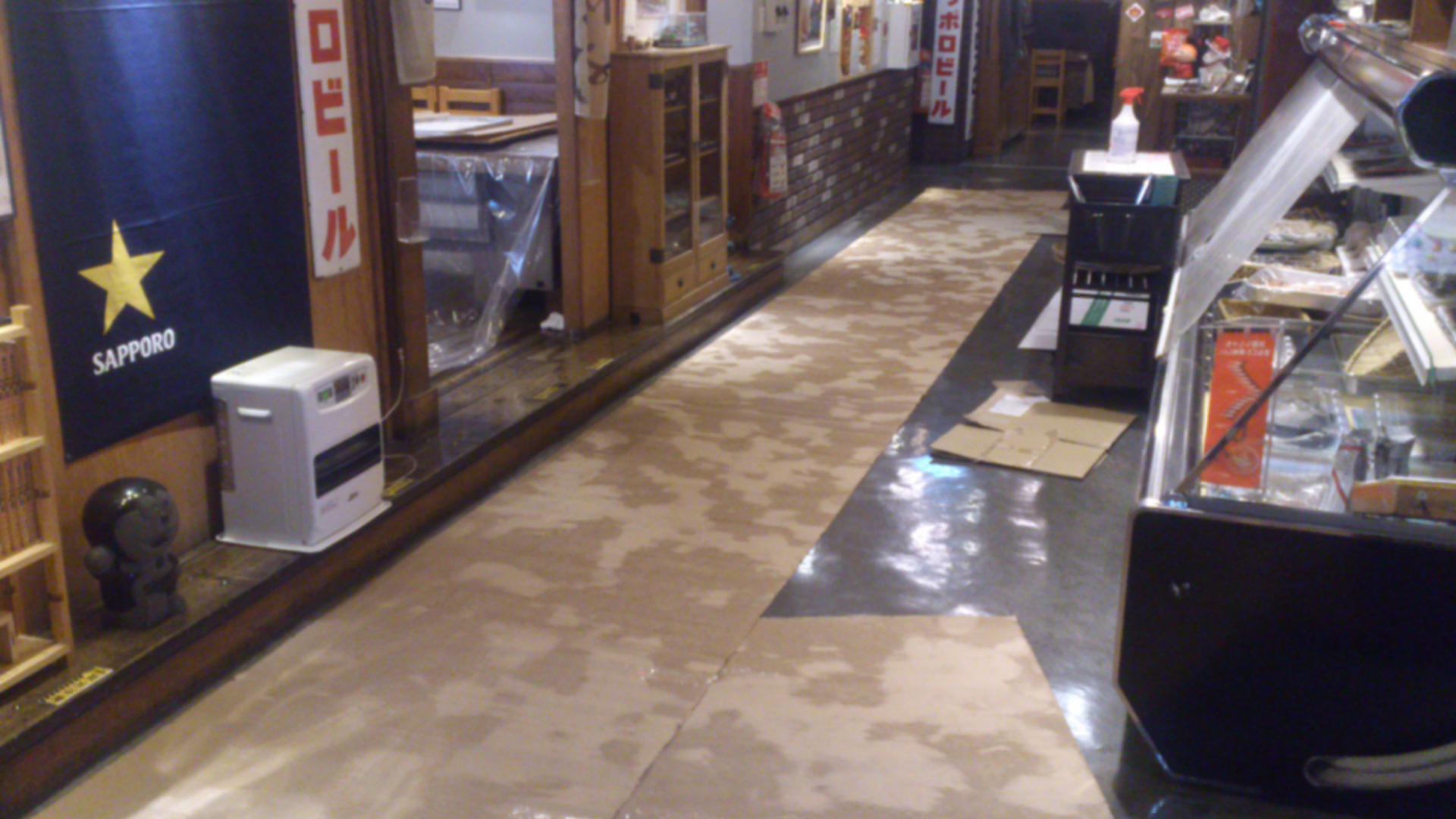 店内のいたるところに段ボールが敷かれます。